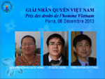 Alors qu'ils ont été mis à l'honneur au cours d'une cérémonie organisée par Le Réseau des Droits de l'Homme Vietnam (Vietnam Human Rights Network) - en collaboration avec l'Association France-Vietnam d'Entraide - à Paris le 8 décembre 2013, les blogueurs vietnamiens sont toujours aussi maltraités par les autorités. L'avocat des droits de l'homme, Lê Quoc Quân, le blogueur Trần Huỳnh Duy Thức, responsable du groupe de Recherche pour la Démocratie et Nguyễn Hoàng Quốc Hùng, défenseur des droits des travailleurs, (...)